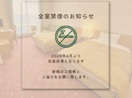 【全室禁煙化のお知らせ】 いつもホテルラヴニールをご利用いただき、誠にありがとうございます。 当ホテルでは、受動喫煙防止および、より快適にお過ごしいただける環境づくりのため、 2026年4月より全室を禁煙室とさせていただ...